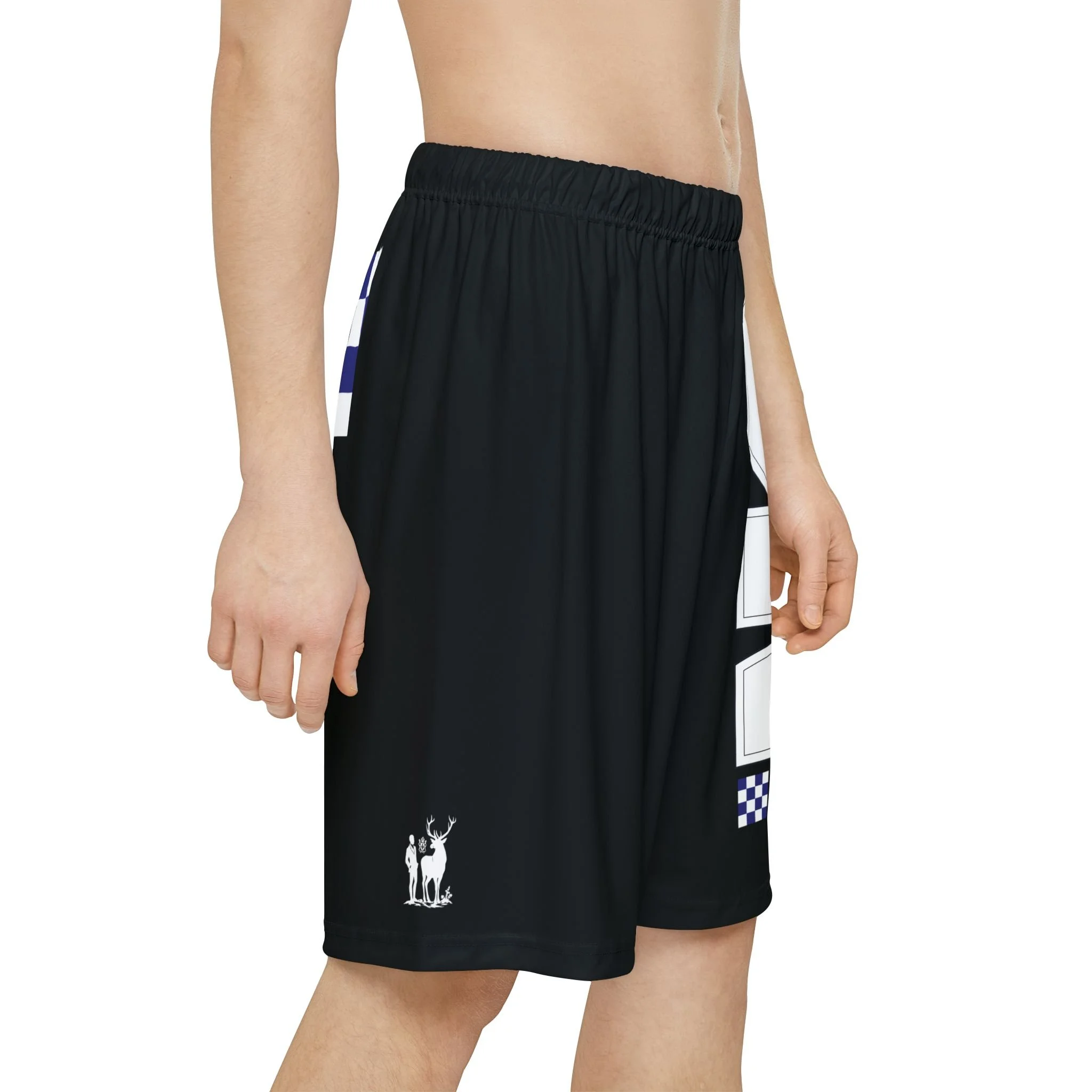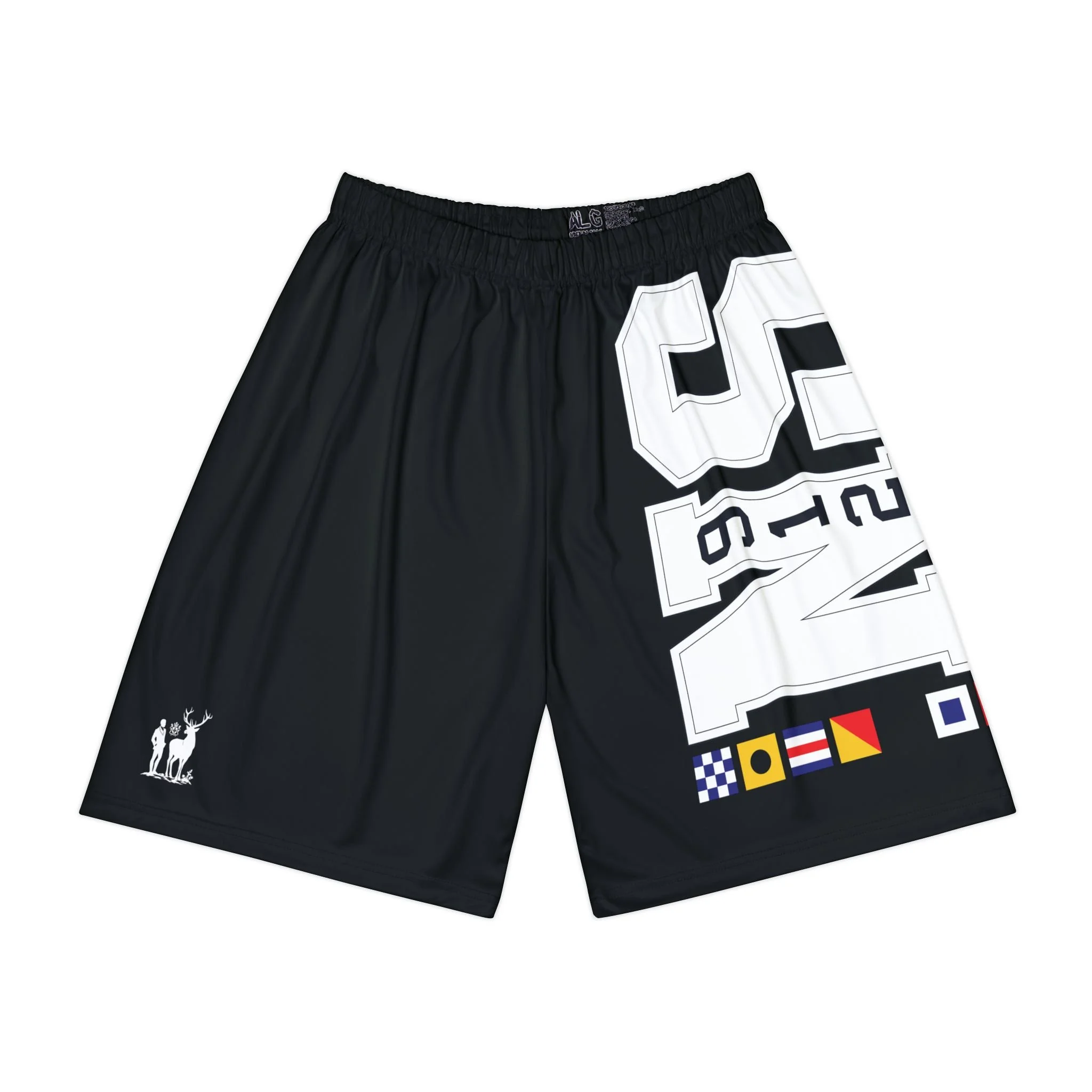 NicoSt Athletic Shorts Black Garment with Nautical Signs and Stag Crest
