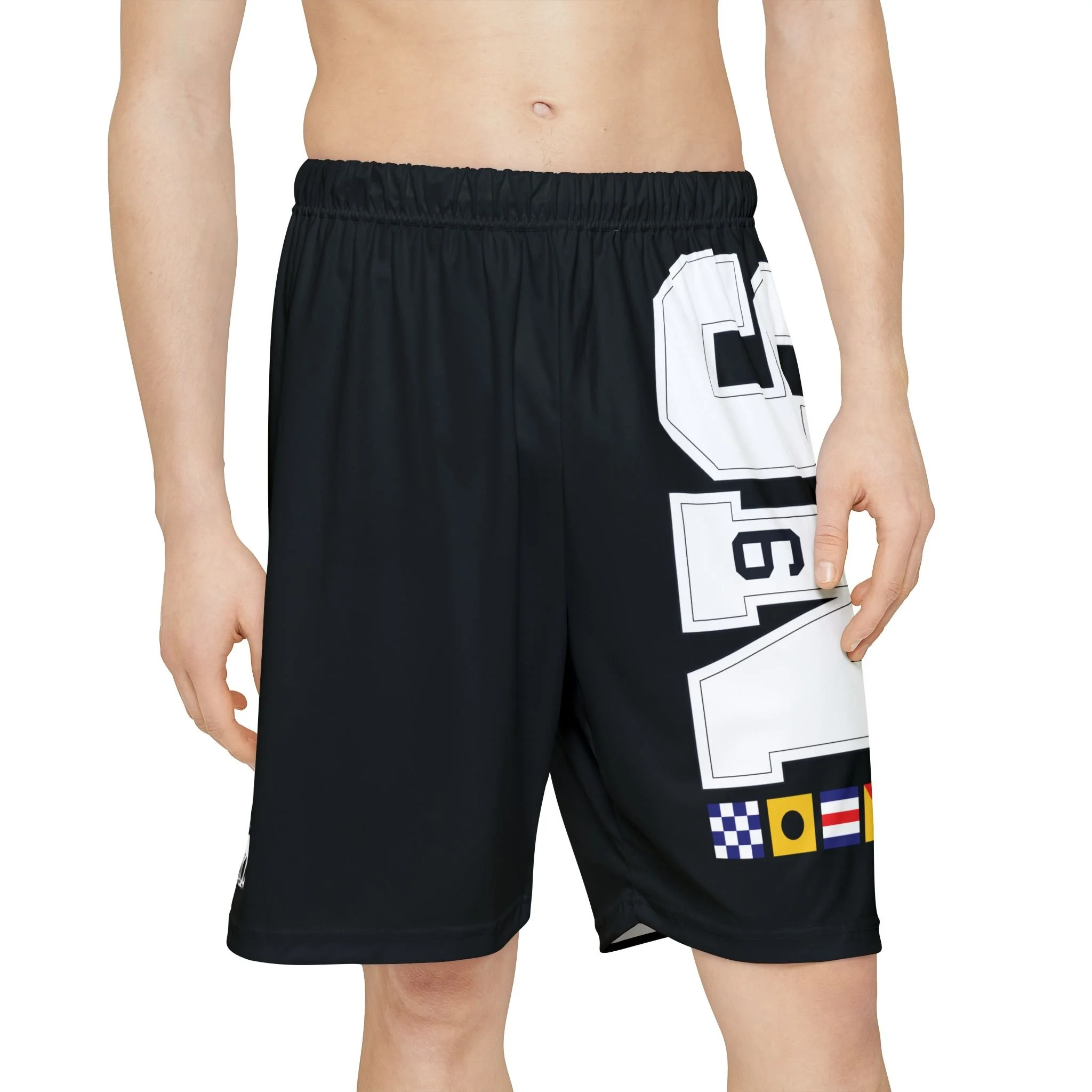 NicoSt Sports Athletic Shorts feature vibrant graphics including the NS letters, city of Savannah representation, nautical signs, NicoSt spelled out, and NicoSt Stag Crest. Made of 100% polyester, these shorts are perfect for sports and outdoor activities. The adjustable elastic waistband ensures a comfortable fit.