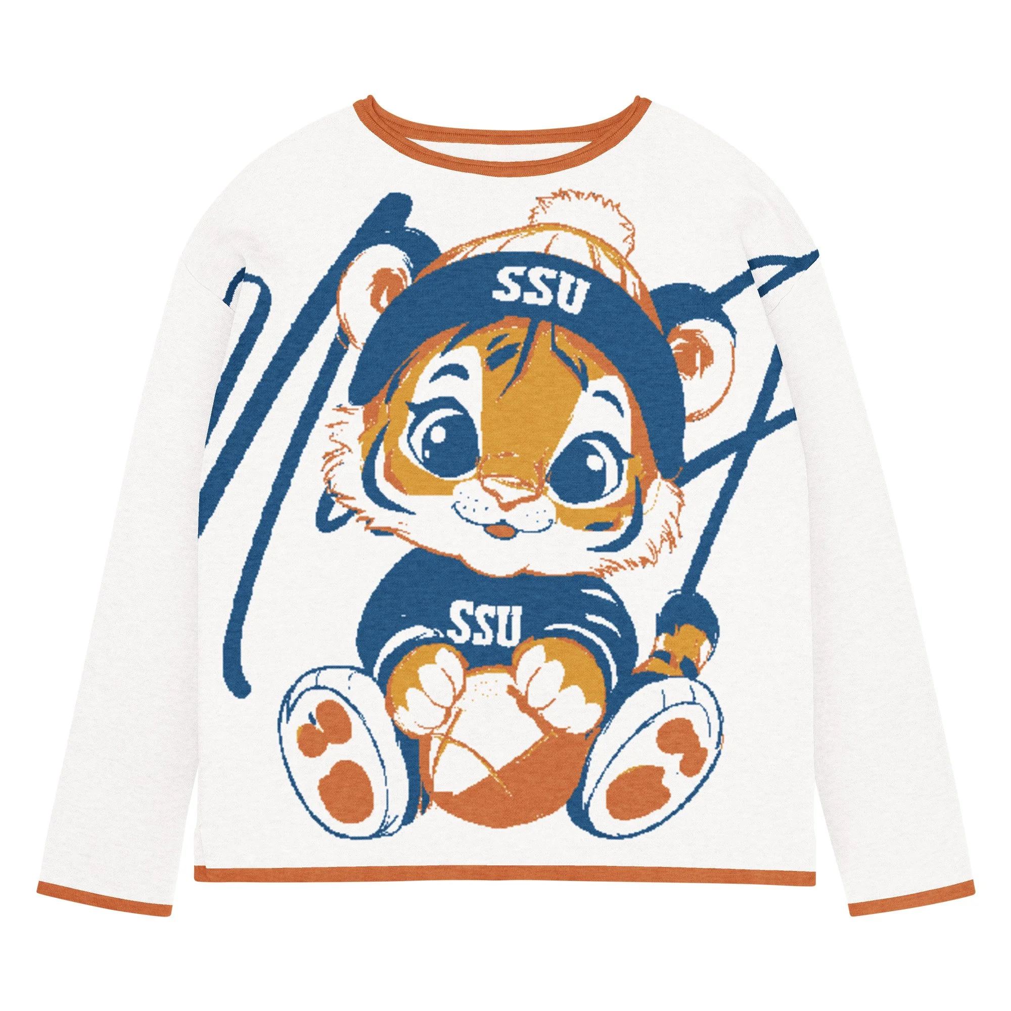 Featuring an adorable baby tiger mascot in SSU navy and orange, this premium knit captures the warmth, legacy, and charm of Tiger Nation in every thread. Perfect for gamedays, homecoming weekends, or off-duty comfort that still turns heads.